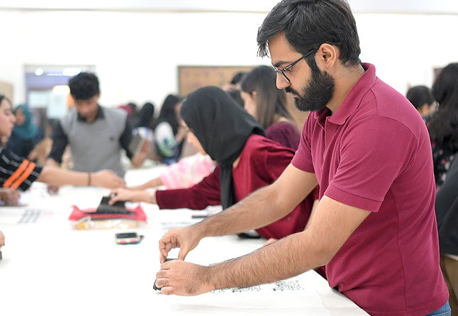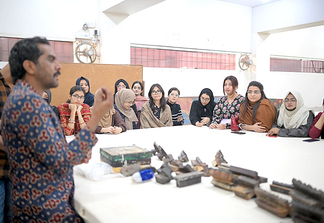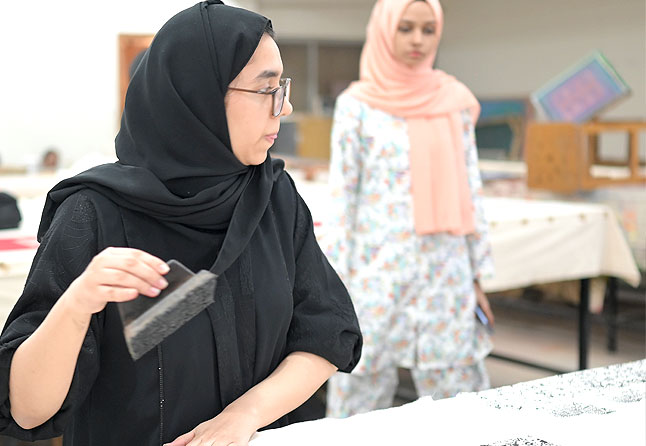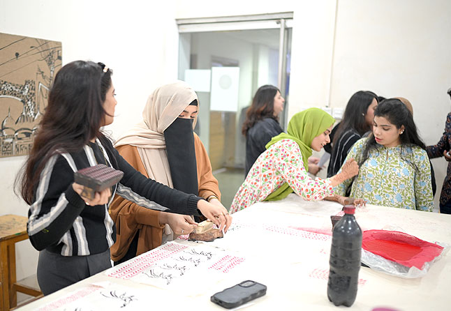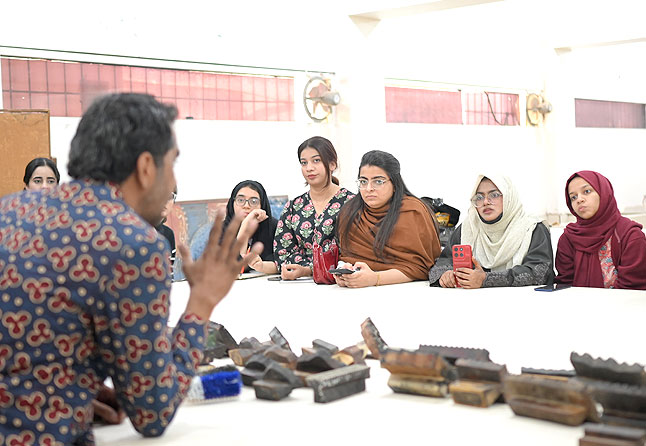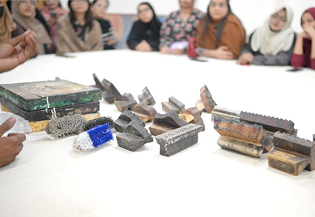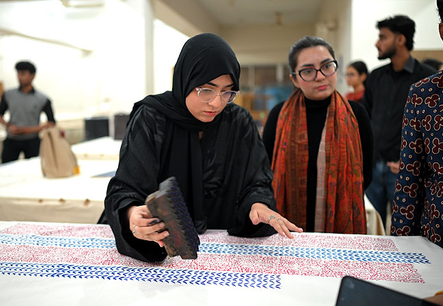 A workshop on block printing was organized by AIFD on 30th of Dec, 2025, where students had the opportunity to gain practical experience in the utilization of the necessary tools and materials for this artistic craft. The session was expertly led by Mr. Ghulam Abbas, a seasoned professional in the field of block printing.